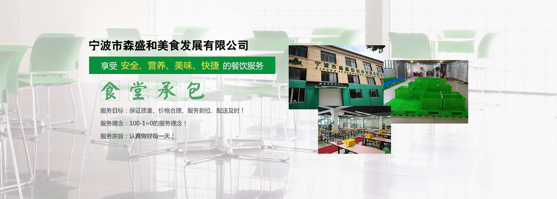 宁波市森盛和美食发展有限公司成立于2004年,注册资金1000万元,经过十三年的经营,至今公司已经发展成为一家集餐饮管理、食堂托管、食堂原材料配送、餐饮管理咨询、物业服务为一体的餐饮服务企业 ,已经成为宁波市餐饮服务行业中的标杆企业。